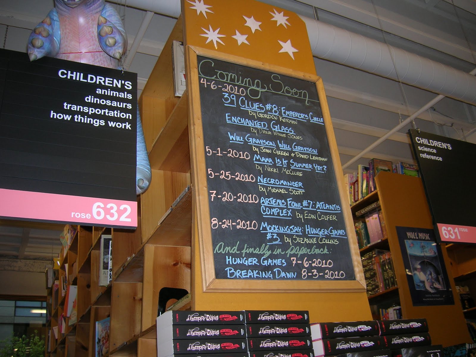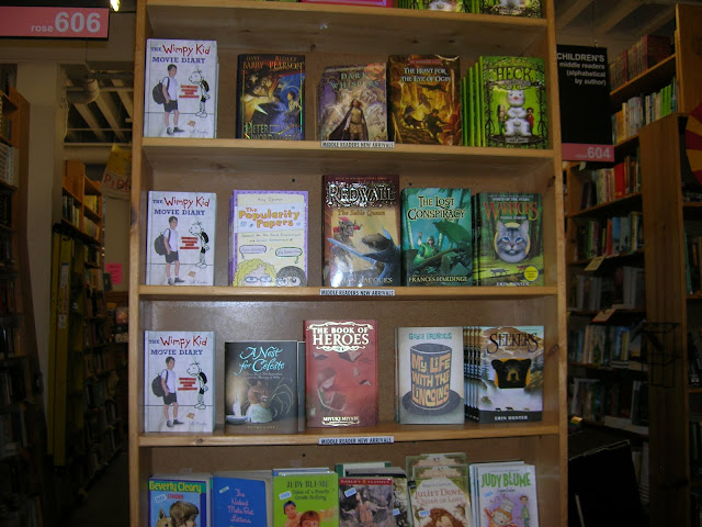 I had my first visit to Powell’s Books when we were in Portland OR for PLA. I have visited many many bookstores in my lifetime but this experience was absolutely incredible and even a bit overwhelming. We went twice — first for a personal tour given by our friend Laura’s cousin Sarah who works in the childrens’ area at Powell’s (can you imagine?) and then we spent hours on a rainy Sunday going from floor to floor, me with my multipage booklist searching for secondhand copies of mostly fiction. I got some good reads and found some astonishing “collectibles.” I know I can shop Powell’s online but nothing beats the experience of being there!